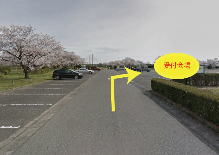 突き当りの駐車場を右に曲がると受付本部に到着です!